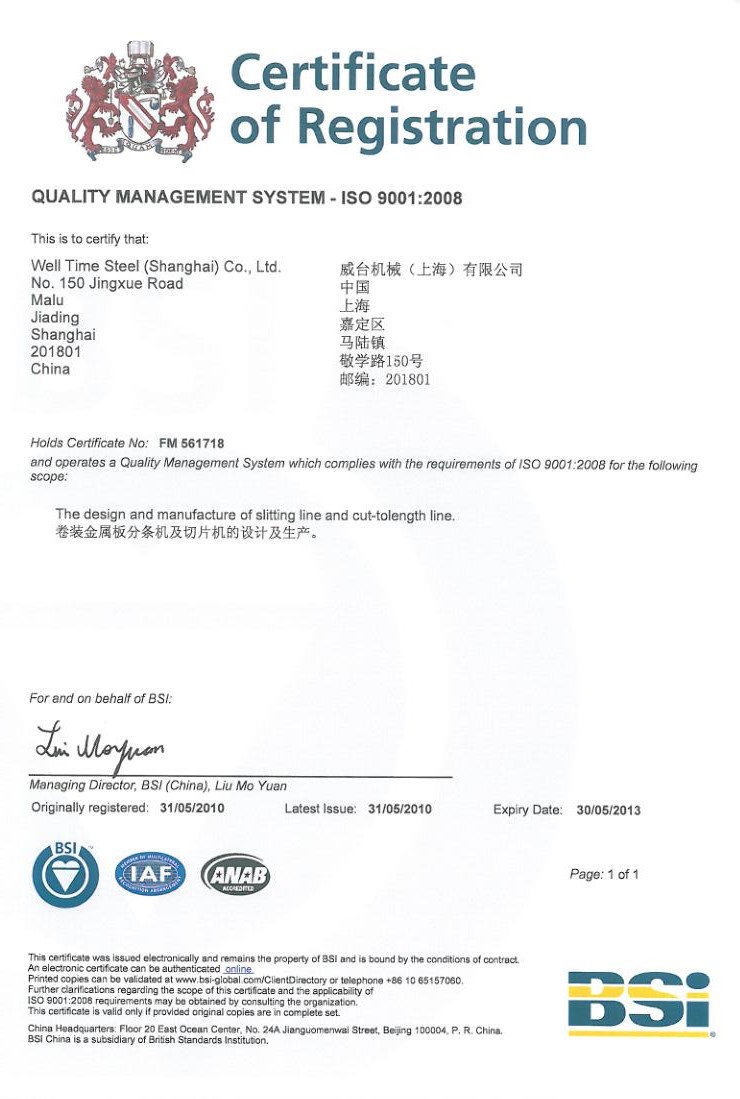 威臺機械(上海)有限公司成立于2002年位于上海市嘉定區,是一家集研發、設計、制造于一體的專業金屬卷片剪切設備制造商。2004年投產后的五年時間內威臺公司接獲各類剪切生產線訂單超過100套年產值近億元